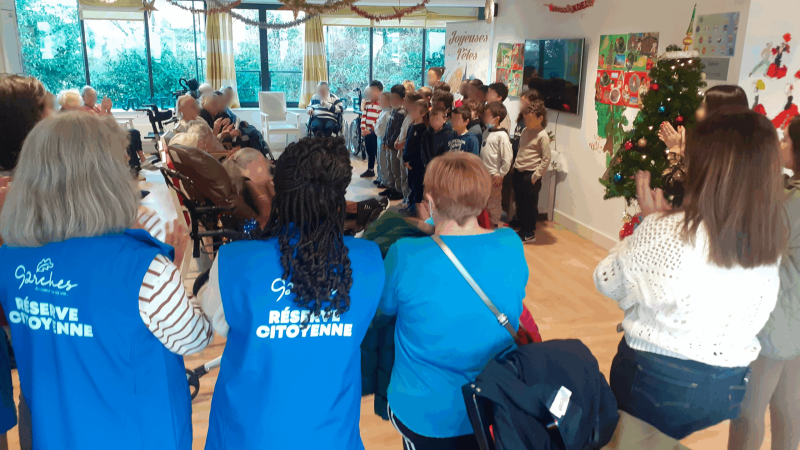 Dans le cadre de l’opération « Un dessin pour nos aînés », organisée par la Réserve citoyenne de Garches, la résidence a accueilli avec joie les élèves venus offrir leurs dessins et interpréter des chants de Noël. Ce moment chaleureux a permis de créer un lien intergénérationnel et d’apporter un peu de magie des fêtes.